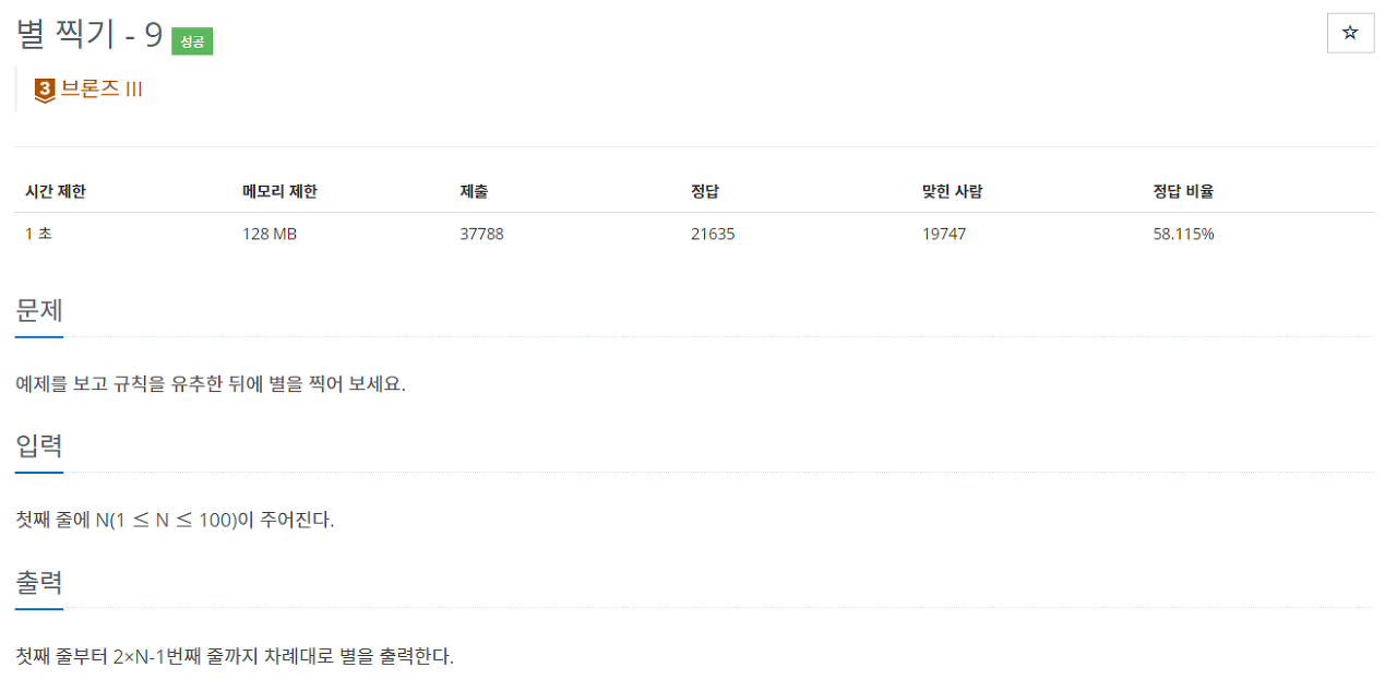 ์ซ์ N์ ์ ๋ ฅํ๋ฉด ์ฒซ์งธ ์ค 2 X N – 1๋ถํฐ ๋ชจ๋์๊ณ ๋ชจ์์ผ๋ก ๋ณ์ ์ฐ์ผ๋ฉด ๋๋ค.