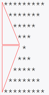 for (j = 0; j < (2 * n - 1) - (i * 2); j++) // ๋ณ ์ง๊ฐ ์ญ์ผ๊ฐํ ์ถ๋ ฅ